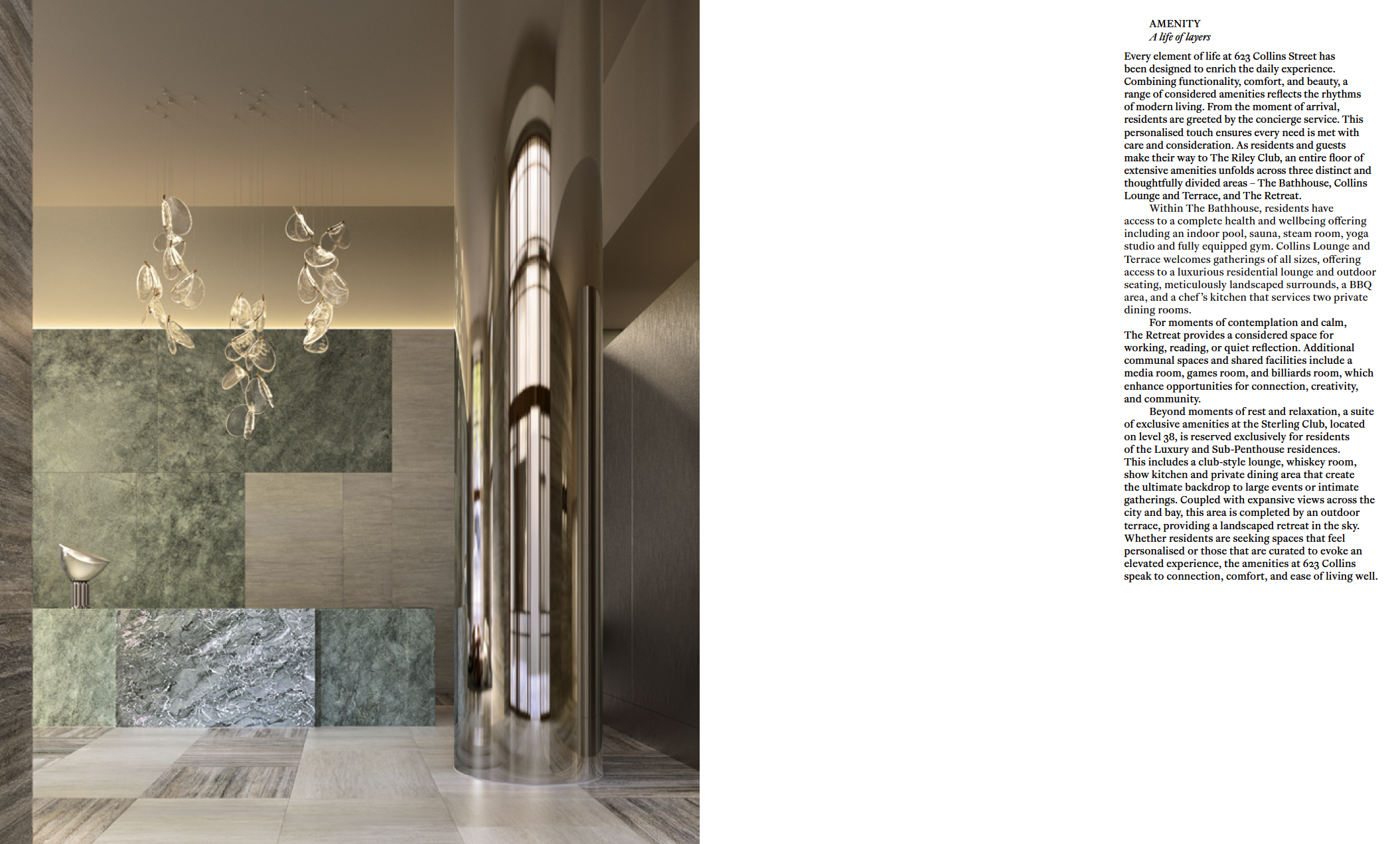623 Collins Street now has a complete language system that exists beyond traditional property marketing. The editorial approach has created a narrative of significance and permanence – this is Melbourne's modern renaissance made tangible.